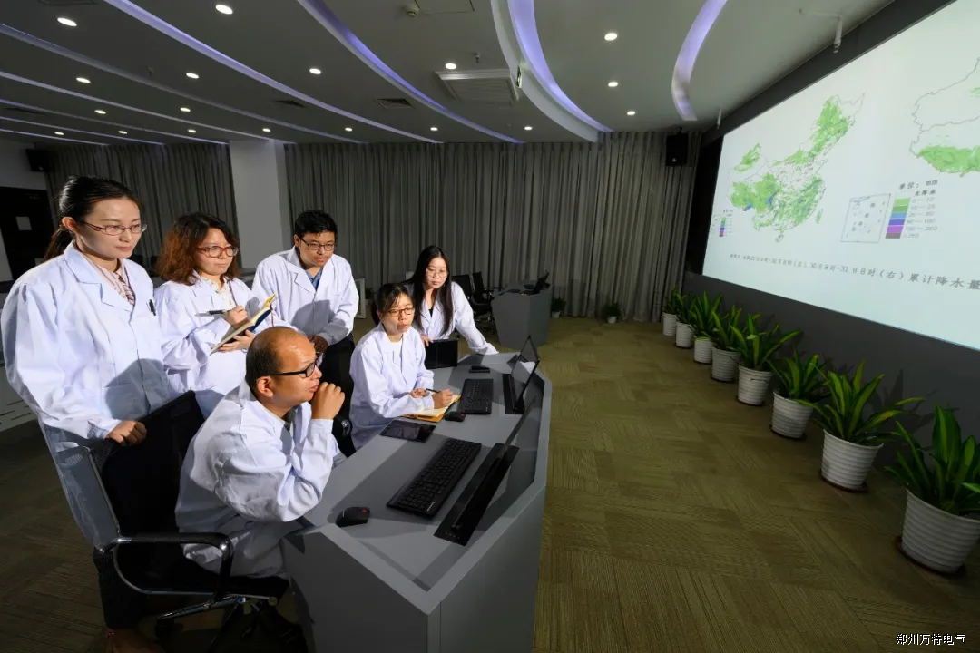 中國電科院數(shù)值天氣預報團隊在實驗室研討電力氣象預報結果