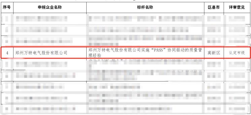 5月22日,鄭州市工信局公示,認(rèn)定我公司實(shí)施“PASS”協(xié)同驅(qū)動(dòng)的質(zhì)量管理經(jīng)驗(yàn)為2023年鄭州市質(zhì)量標(biāo)桿企業(yè),鄭州市此次共認(rèn)定20家企業(yè),高新區(qū)僅有兩家企業(yè)通過。